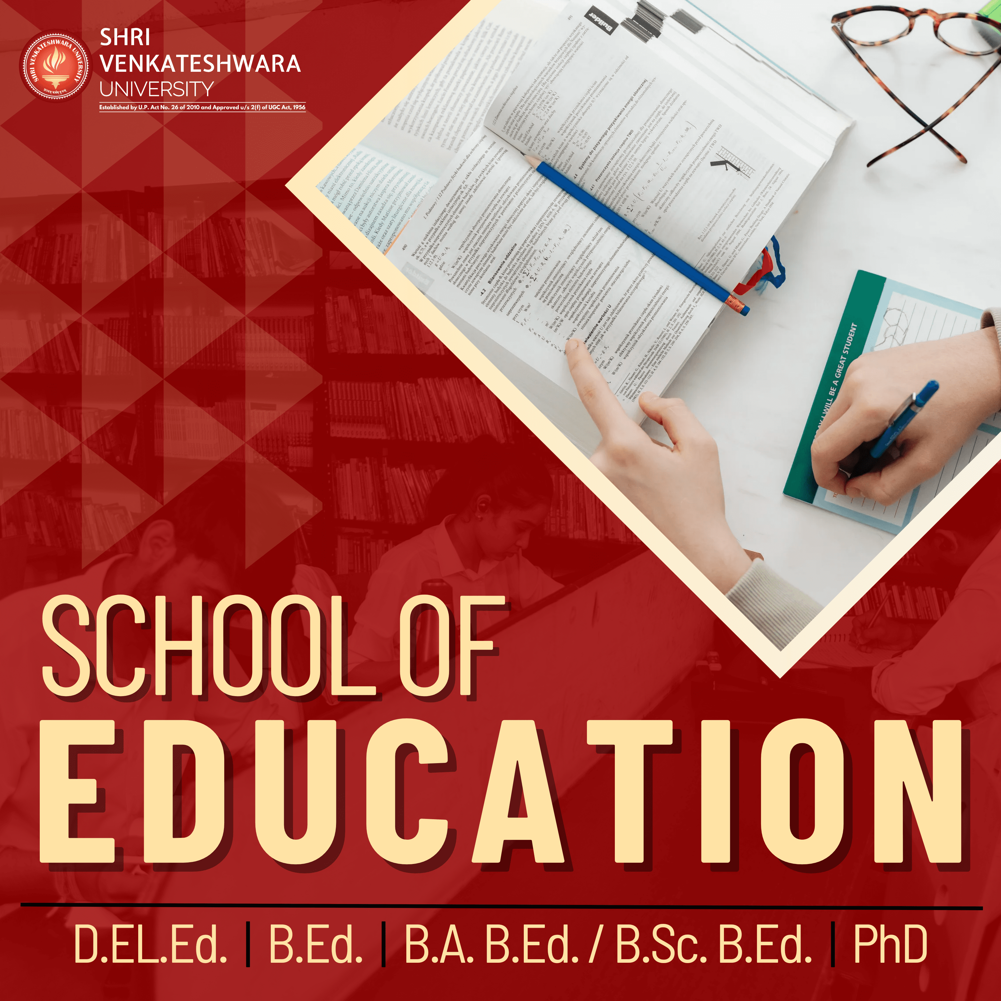 The School of Education at Shri Venkateshwara University, Uttar Pradesh, is renowned for its dedication to educational excellence, offering leading programs in teacher education and educational research in India. Accredited by the National Council for Teachers Education (NCTE), our meticulously designed programs blend theoretical knowledge with practical skills, preparing graduates to address the challenges of modern education systems effectively.