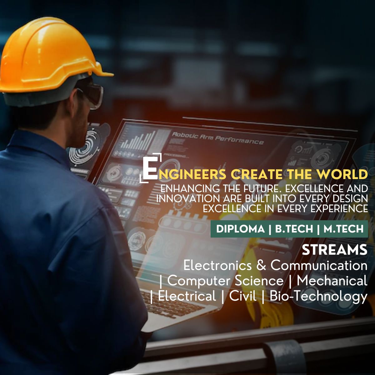 Collaborations with prominent organizations and industries provide students with ample opportunities for internships and placements, reinforcing our commitment to producing industry-ready graduates. State-of-the-art infrastructure, including modern classrooms, well-equipped laboratories, and an extensive library, creates an enriching learning environment. Research and Innovation are strongly encouraged, with students engaging in projects that push the boundaries of engineering knowledge.