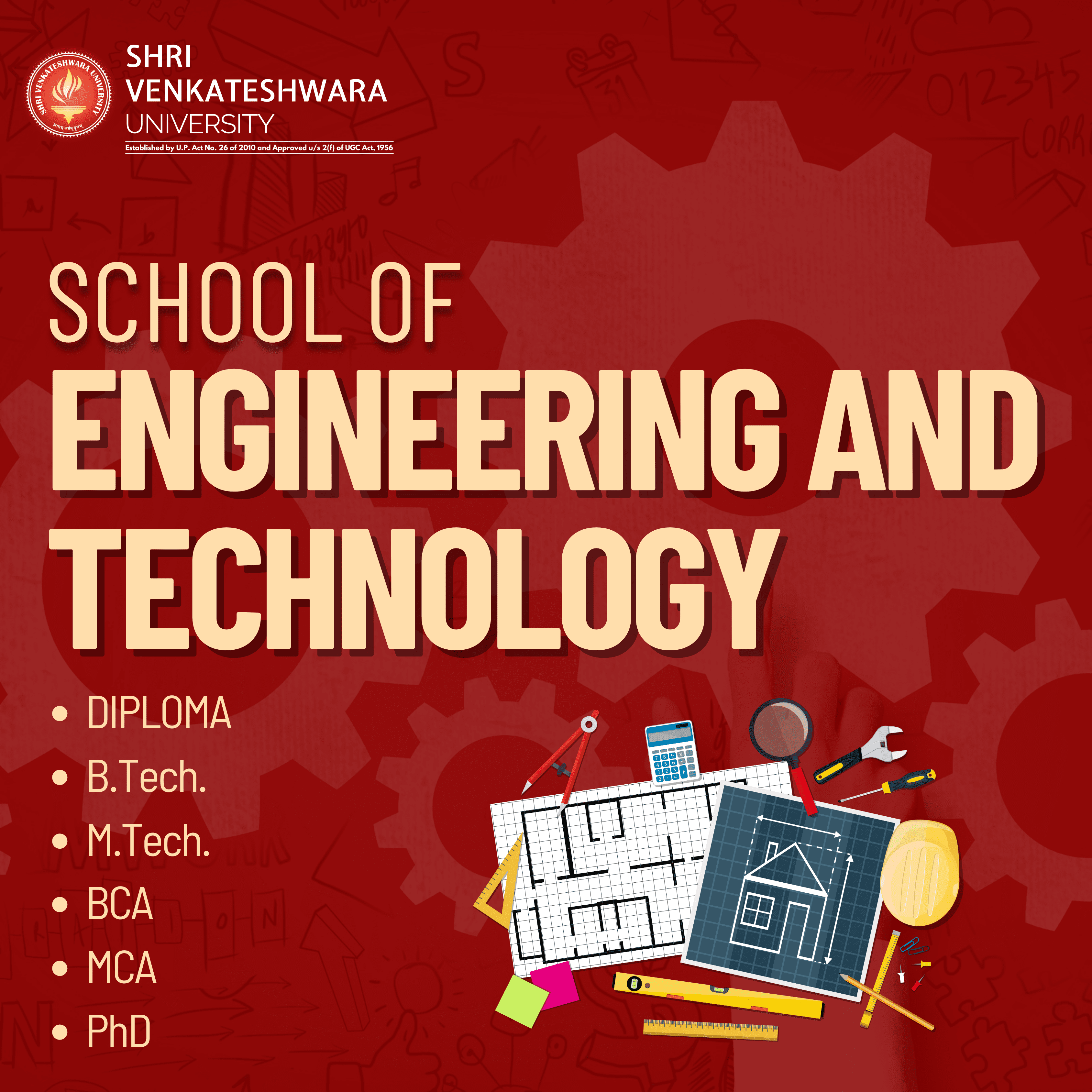 The School of Engineering & Technology at Shri Venkateshwara University embodies the epitome of engineering education, inviting you to join in this expedition of exploration and professional development, where your engineering ambitions will be nurtured, tested, and actualized, preparing you to become pioneers in the future technological world.
